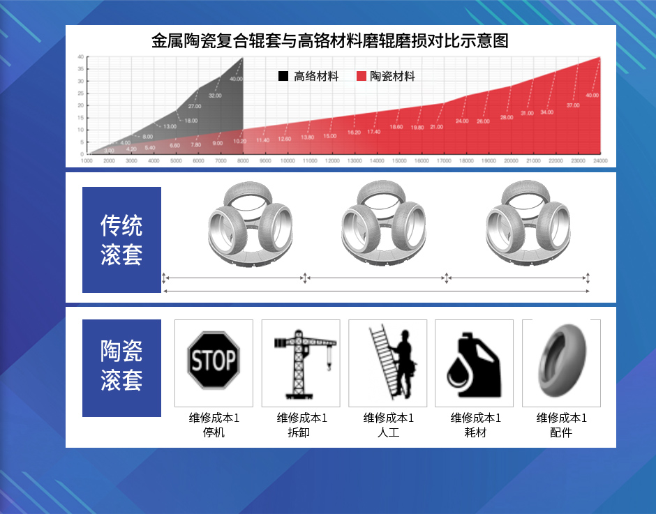 - 陶瓷復(fù)合輥套是堆焊/高鉻輥套使用壽命2.0-3.0倍